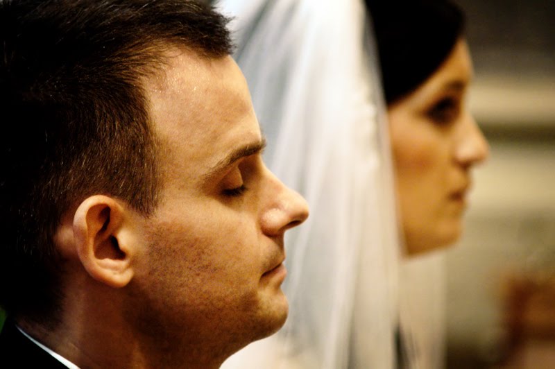 A fotózást a templomi esküvő követte ami egy misével volt egybekötve így bőven maradt időm lődözni.A sötét ellenére egész jól tudtam kézből dolgozni,bár a fontos pillanatokat itt már Dina D90-vel fotóztam az SB-600-al felszerelve.